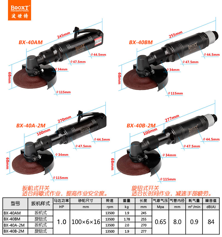 東莞市強(qiáng)勁五金工具有限公司提供臺(tái)灣BOOXT波世特品牌氣動(dòng)工具,風(fēng)動(dòng)角磨機(jī)BX-40A-2M廠家直銷,首件享特價(jià)。咨詢熱線:4008301980