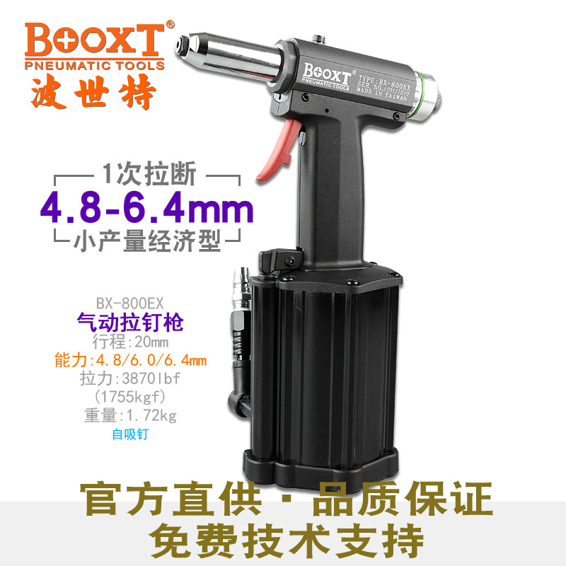 東莞市強勁五金工具有限公司提供臺灣BOOXT波世特品牌氣動工具,氣動抽芯鉚槍BX-800EX(自吸釘)廠家直銷,首件享特價。咨詢熱線:4008301980