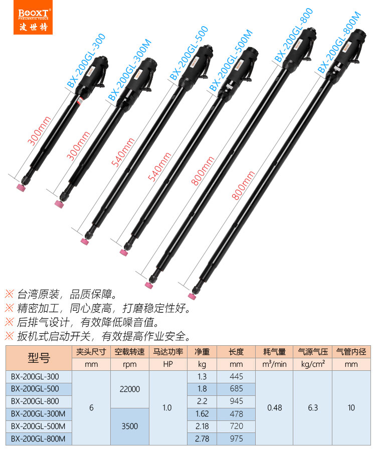 東莞市強勁五金工具有限公司提供臺灣BOOXT波世特品牌氣動工具,氣動內磨機BX-200GL-500M廠家直銷,首件享特價。咨詢熱線:4008301980