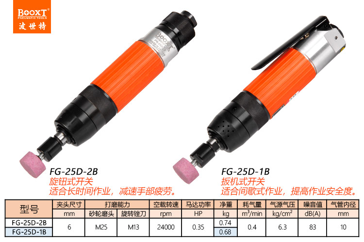 東莞市強(qiáng)勁五金工具有限公司提供臺(tái)灣BOOXT波世特品牌氣動(dòng)工具,高精度氣動(dòng)打磨機(jī)FG-25D-2B廠家直銷,首件享特價(jià)。咨詢熱線:4008301980
