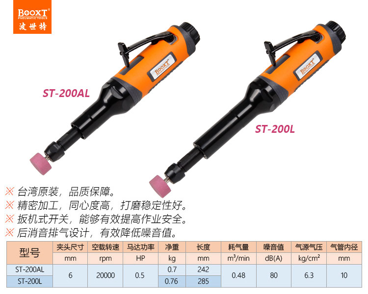 東莞市強(qiáng)勁五金工具有限公司提供臺(tái)灣BOOXT波世特品牌氣動(dòng)工具,加長(zhǎng)氣動(dòng)打磨機(jī)ST-200AL廠家直銷,首件享特價(jià)。咨詢熱線:4008301980